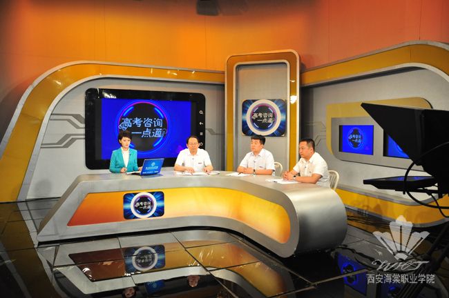 7月30日,应栏目组邀请,beat365手机版官方网站院长冯居秦、海棠美学职校校长谢元龙、学院招生办主任王智锦三位学院领导做客陕西电视台一套大型直播节目《高考咨询一点通》。