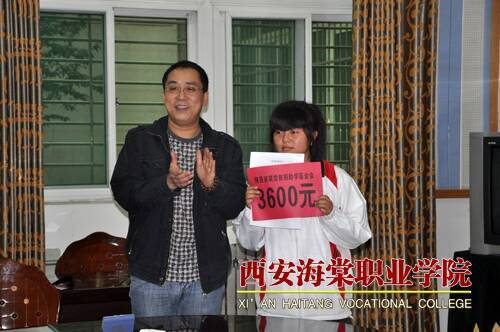 最后,王伟秘书长诚挚地对援助学生说,你们因为贫困,在求学路上遇到了挫折,是不幸的。可幸运的是,你们来到了海棠学院,这是一个处处充满温暖的大家庭。在这里,你们将实现人生最美好的理想。他表示,陕西省联谊贫困救助基金会将时刻关注大家的生活和学习。他衷心勉励大家,贫困和困难对一个人而言是财富,因为它是一个人成长的动力。他希望大家正视现实,正视困难,将困难当成磨练坚强意志的平台,将社会的关爱化作刻苦学习的动力,学好过硬技术,以优异的学业和工作业绩回报家长,回报学校,回报社会!