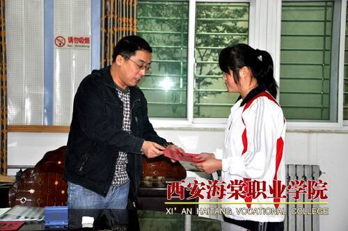 深秋时节的白鹿原,秋风中带着丝丝凉意,可西安海棠学院第一会议室却春意盎然。10月10日,由陕西省联谊贫困救助基金会和西安海棠学院主办,2011秋季贫困助学活动在西安海棠学院隆重举行。陕西省联谊贫困基金会副秘书长王伟、西安海棠学院副院长吕博、西安海棠技师学院院长宋党助、西安海棠集团办公室主任闫惠明、西安海棠学院学生处处长李伟等领导及受助学生袁小妮等6名学生出席了活动。李伟处长主持了助学仪式。