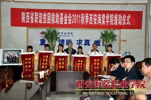 陕西省联谊贫困基金会2011秋季贫困助学活动在西安海棠学院举行