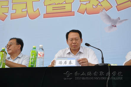 9月1日上午,beat365手机版官方网站主体育场上军歌嘹亮、军旗飘扬,2011军训阅兵式暨总结表彰大会隆重举行。院长冯居秦、学院委员会书记冯齐昌,学院委员会副书记王爱民,副院长吕博、蒋国瑜、王景洪、赵景利、许春海,教育集团办公室主任闫惠明,美学职业学校校长谢元龙,技师学院院长宋党助,军训团团长杜晓健上校,军训团参谋长谢林波少校等出席大会。大会由团委副书记张杰主持。