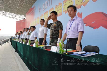 9点整,在嘹亮的国歌声中,在全体师生和教官的注视下,五星红旗冉冉升起。激扬的《检阅进行曲》奏起,院长冯居秦在军训团团长杜晓健上校的引领下,围绕操场检阅了参训学生组成的34个方阵。“首长好”、“为校争光”……铿锵有力的呐喊响彻校园,充分展现了军训期间,同学们昂扬的斗志与饱满的精神。