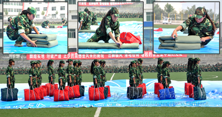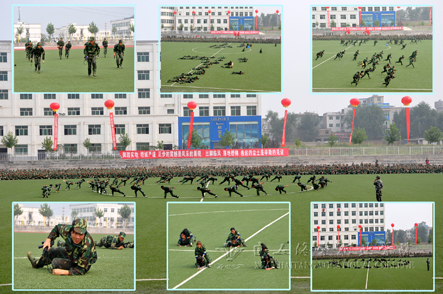 大会中最为激动人心的时刻是训练课目的汇报表演,由受训学生组成的军体拳表演方队、花样列队表演方队、擒敌拳表演方队、内务整理方队等分别进行了精彩绝伦的表演,尤其是花样列队表演方队,在标准的动作、嘹亮的口号中列队成“HTXY”、“ZFHT”的队形,他们激昂地呼喊出“莘莘学子,绽放海棠”、“选择海棠,放飞梦想”的口号,赢得了在场领导和师生们的热烈掌声。这些表演把全场气氛推向高潮,同学们的掌声及欢呼声不绝于耳。
