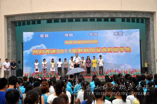 经过前期的考察交流,beat365手机版官方网站与韩国大邱未来大学建立了合作办学协议,互派留学生项目正式启动。9月3日上午,我院在一号楼前,为首批赴韩国大邱未来大学留学的学生举行了隆重的欢送仪式。院长冯居秦,副院长蒋国瑜、王景洪、吕博,中医美容学院院长高金虎等领导及中医美容学院师生参加了欢送仪式。会上,学院领导分别为11名赴韩留学生颁发了纪念品并进行了殷切寄语。