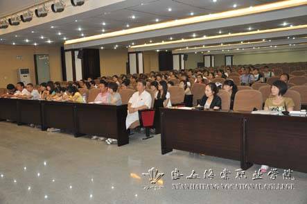 王书记做了精彩的报告。他结合学院的产学研办学特色,以创业者的身份,给大家讲述了学院在王海棠院长的带领下,与时俱进,克服种种困难,艰苦创业的艰辛历程和教学取得的丰硕成果。海棠学院是海棠集团创办的学校,1995年,王院长等三名创业者,从租用的三十平米房子开始起步,开设了中医美容专业。2000年,与辽宁中医药大学合作办学,王院长被聘为硕士生导师。2002年,学院被上级评为学历文凭试点院校、中医美容专业全国试点院校。2008年建成医学类专业,同年建成了面积500多亩的东校区。2010年,与韩国大邱未来大学签订友好合作办学协议。经过多年的发展,学院构建了以中医美容专业为龙头,以医学保健专业为特色,管理、艺术、工学类专业并举的专业体系,目前在校生一万多名,为社会培养了数以万计的大批高素质的应用型人才,引领时代美容业潮流,为社会做出了巨大的贡献。王院长由于在中医美容教学研究方面成绩突出,先后多次被中央《半边天》、《夕阳红》和地方知名媒体采访。学院因教育管理等工作成绩突出,先后荣获全国十大专业特色民办高校、平安校园、中国民办高等教育优秀院校等殊荣。