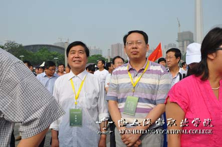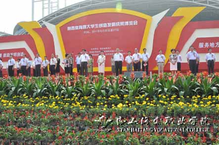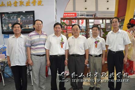 上午十一点,在大家热烈的欢迎下,省教育厅厅长杨希文兴致勃勃地走进我院展览厅,他称赞我们的展厅布置新颖,非常有特色,祝愿我院参展取得良好的效果,并祝海棠学院越办越好。最后,杨厅长还高兴地同院领导合影留念。