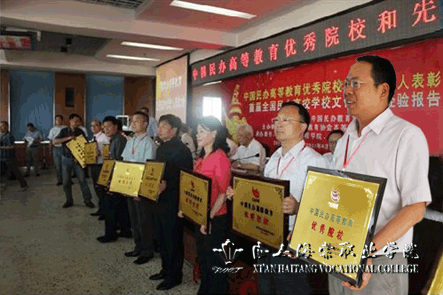 2011年6月24日下午,中国民办高等教育优秀院校和先进个人表彰会在齐齐哈尔工程学院召开。由于beat365手机版官方网站以及冯居秦院长对中国民办高等教育的发展做出了突出贡献,西安海棠学院从300多所入围院校中脱颖而出,斩获中国民办高等教育优秀院校奖,院长冯居秦荣获中国民办高等教育先进个人。
