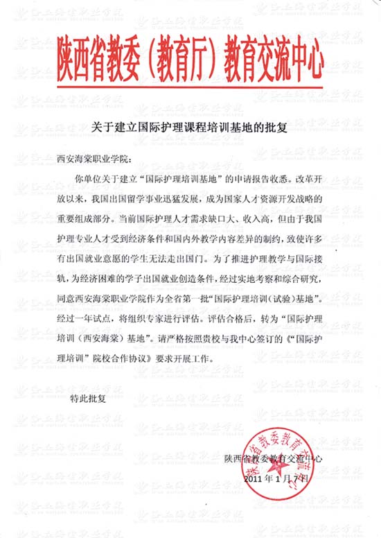 会议在雄壮的国歌声中拉开帷幕,教务处杨国峰处长主持。会上我院教学副院长王景洪同志代表学院致辞,并对国际护理课程教育基地落户我院的重大意义进行了阐述和表态;陕西省教委(教育厅)教育交流中心常务副主任王宁宣读《陕西国际护理课程beat365手机版官方网站教育基地批文》。