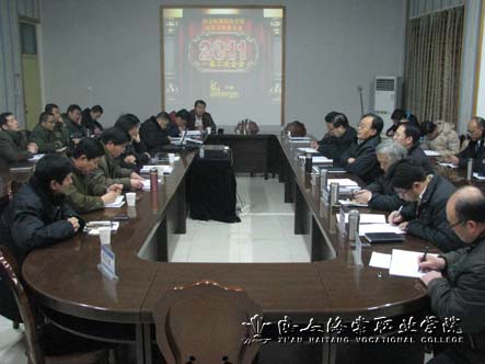 党委书记冯齐昌同志在大会上致辞。党办、教务处、学生处等部门代表以及中医美容学院等二级学院代表在会上发言。他们总结了各自部门在2010年的工作,分析了在工作中遇到的问题及在工作上的不足,并制定了2011年的规划。