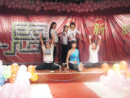 晚会在动感的街舞中拉开帷幕,该舞蹈是由职校街舞队表演的,在他们的带动下,在场学生激情高涨,沉浸在欢乐的氛围中。晚会节目类型丰富,种类繁多,小品《奥运火炬手》让同学们捧腹大笑;《T台秀》让同学们惊叫连连;舞蹈串烧,让同学们感受到了舞蹈的魅力所在。歌曲《蒲公英的约定》,舞蹈 《翻身农奴把歌唱》,朗诵《相信未来,我们都是有梦的孩子》,小品《奥运火炬手》等节目展现了新一代学子对生活的激情和热情。现场的气氛一次次被推向高潮,老师也不甘示弱,一曲《爱死了昨天》使全场震惊,掌声经久不息。
