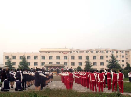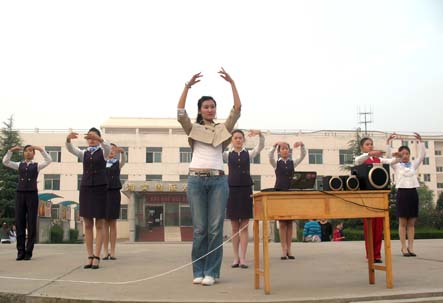 整齐的服装,优美的动作,自信的脸庞……西安海棠国际技术学院广场呈现出一道亮丽的风景线。