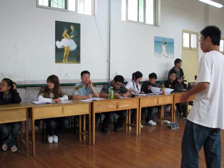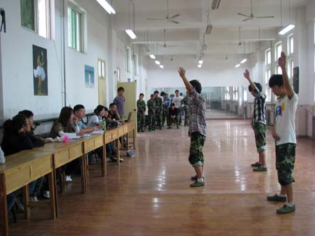 军训生活已渐渐接近尾声,新的学期即将到来,为了使本次军训生活更加丰富多彩,一年一度的军训文艺汇演前期筹备工作正在进行中。 2010年8月25日下午,首次节目筛选在学院二号教学楼形体室顺利进行。