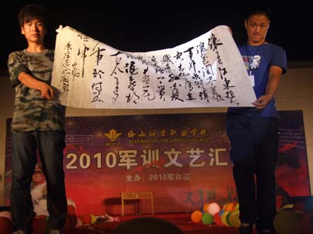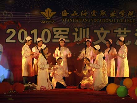 2010年8月30日晚7:30,学院2010年军训团文艺汇报演出在篮球场隆重举行。灯光霓红,流光溢彩的表演让海棠的夜晚充满了色彩和活力。
