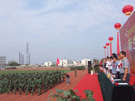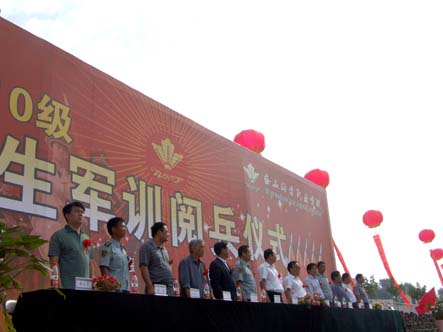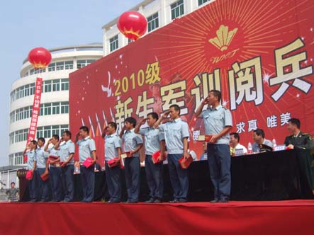 经历了15天严格训练的新生们早已蓄势待发,他们一个个精神饱满,坚毅而自信的脸庞上藏不住他们紧张兴奋的心情。对于2010级新生来说,这是学院领导验收这15天苦练成果的特殊日子,这场阅兵仪式牵动着每个新生的心。