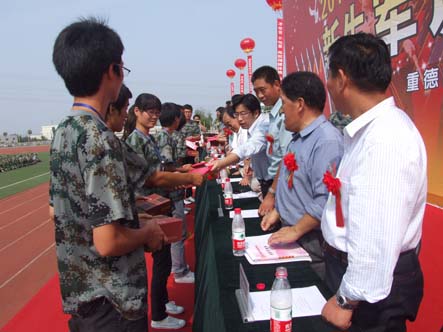 军训团总指挥、副院长吕博宣读了2010军训团嘉奖令,学校领导分别为军训优秀指导员学员、优秀教官、118名优秀学员颁发了奖品和荣誉证书。