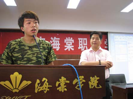 海棠学院就业的一个亮点就是创业带动就业,创业带动就业是党十七大提出的。海棠学院也是率先在全国高校提出来创业带动就业并开展创业教育的院校之一。我们不仅把创业教育深入到课堂里面,而且进行这方面的一些训练和讲座,同时学院里边还成立了创业社团,创业社团就是给学生提供勤工俭学,社会实践的平台。