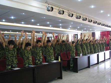 翟新龙董事长还通过训练和演说相结合的方式向在场的学生们阐明了人为什么要成功,人怎样才能成功,大学生要怎样对待自己的大学生活,怎样确立人生目标,怎样给自己定位,怎样对待自己的父母等。训练让所有在场的学生汗流浃背,同时翟新龙董事长富有哲理和感情的话语也感动了所有在场的学生。在翟新龙董事长的鼓励下,四五名新生依次上台谈了自己对这堂特训的感受。