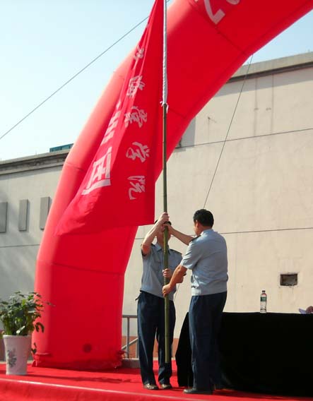 最后,副院长吕博向2010年军训团团长王铁练同志授军训团团旗。