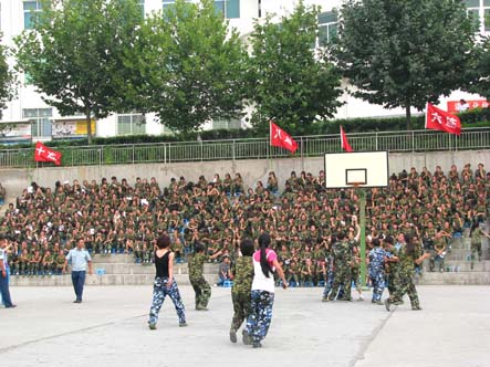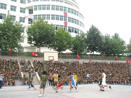 2010年beat365手机版官方网站军训团篮球联赛将于8月18日-8月19日在海棠职业学院篮球场举行,比赛历时2天。 此次比赛裁判由各连队教官担任,记分员由指导员担任,2010级各新生按所属连队分男、女组代表队参加比赛。