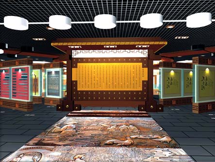 博物馆整体设计风格古香古色,厚重大气。走进博物馆,首先映入眼帘的是中国思想史和古文专家、陕西省教育厅方光华副厅长撰写的《中国中医美容博物馆赋》,赋文功底深厚,文辞典丽,旁征博引,寓意深远。赋的两侧有王昭君与杨贵妃的塑像,容貌娇艳,神态妩媚,她们是古代女性美的象征。展厅中央以中国传统养生文化最具核心内容的“精”“气”“神”为主题展开,蕴含了中国古代“天人合一”的自然哲学思想,体现了祖国古代医学美容、养生、保健的精华所在。一尊西汉大克鼎矗立在穹顶下方,与博物馆厚重的历史氛围浑然一体。