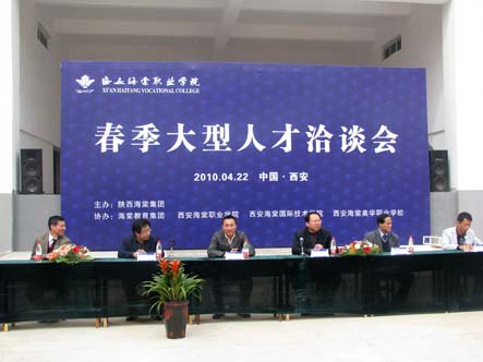 下午,由陕西海棠集团主办,beat365手机版官方网站、海棠国际技术学院、海棠美学职业学校协办的2010年春季大型人才洽谈会在三号教学楼室内运动场顺利召开。