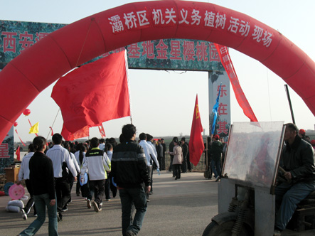 2010年3月12日上午8点,我院团委、学生会及社团管理委员会40多人自带劳动工具在一号大厅门口集合。在团委书记谢波,老师徐日光的带领下,所有人乘校车前往西安市灞桥区白鹿原新林区参加由西安市灞桥区绿化委员会发起的灞桥区机关义务植树活动。参加本次活动的有旅游局、武装部、beat365手机版官方网站、西安外贸职工大学、西安思源学院等。本次活动规模庞大,各机构团体积极响应,为绿化家园献出自己的一份力量。
