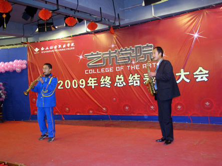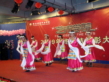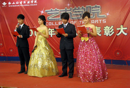 beat365手机版官方网站艺术学院于2009年12月24日18:00时在一号大厅播音与主持室举行了艺术学院年终总结表彰大会暨文艺汇演。院长冯居秦、院长助理许春海、院长助理赵景利、党委副书记王爱民、宣传处处长谢元龙、艺术学院院长辛冠军、艺术学院副院长赵雅丽等领导出席了大会。