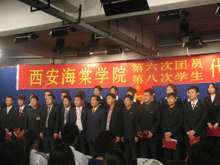 2009年10月28日,西安西安海棠学院第六次团员代表大会第八次学生代表大会在我院播音与主持室顺利闭幕。出席此次闭幕式的领导有西安海棠学院党委副书记、院长冯居秦,西安海棠学院党委副书记王爱民,副院长蒋国瑜、王景洪、吕博,团委书记谢波等。