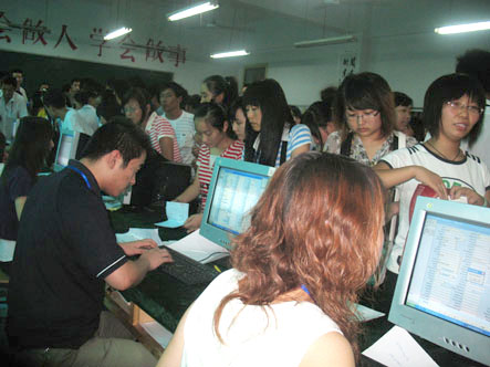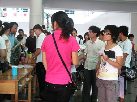 2009年8月10日上午一大早就有新生陆续来我院报到,上午十点左右我院大厅前爆满,接下来的时间我院大厅以及各报道小组处挤满了前来报到的新生及家长。