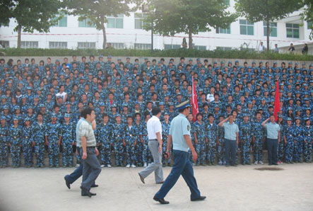 在雄壮的军乐声中,院长冯居秦、吕博,军训团长王鉄练,我院军训团参谋长张有斌一同检阅了军训方队。2009级全体参训学员向军旗行注目礼,动作整齐美观且铿锵有力。这充分展现了2009级学子的风貌。“同学们好!——首长好!”“同学们辛苦了!——为人民服务!”嘹亮的回声在汇演场上环绕,听——同学们的声音是多么地响亮;一声“标兵就位”,阅兵式正式打开了序幕,由新生组成的30个连队方阵开始展现这15天的辛苦成果。坚毅的目光、统一的着装、整齐的步伐、响亮的口号。15天的艰苦军训,磨练了学员们钢铁般的意志,炼就了学员们军人般的气质。这一刻,全体学员将英姿飒爽、朝气蓬勃地展现青春风采,将从平庸走向卓越。口号漫天飞扬着,步伐铿锵地迈着,掌声也不断的响起。