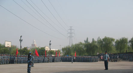 2009年9月1日上午,我院2009级新生军训成果汇报表演暨总结大会在我院东操场隆重举行。出席汇报表演大会的有我院院长冯居秦同志,军训团团长王鉄练同志,副院长兼军训团政委吕博同志,军训团参谋长张有斌少校,军训团副参谋长堵飞少校等。