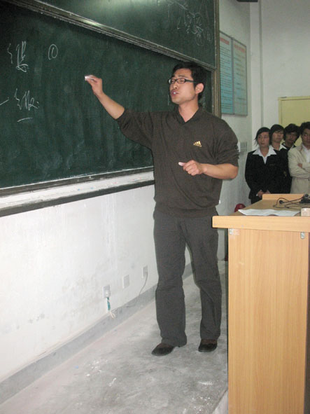 演讲在全场爆满的欢呼声中拉开了帷幕。张老师慷慨激昂的为我们演说着当代大学生的种种就业问题,让我们了解到:“人才不一定有口才,有口才的就一定是人才”。张老师就有关“上大学究竟是为了什么?”“上大学究竟在学什么?”等问题做了讨论。并引导学生在大学生活中很好的规划自己的职业。