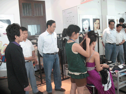 比赛开始,各赛场的学生认真备战。化妆比赛赛场的学生认真的为自己的模特装饰打扮,很多化妆师亲自给自己的模特设计了吸引观众眼球的个性服装。美甲赛场的学生精心的在模特手上雕饰着不同的花型,个性张扬的花式展现了当代青年学生的大方,展示出了他们的个性魅力。动漫设计和平面设计赛场的学生用键盘认真的设计描绘着心中的蓝图。比赛过程中,灞桥区教育局王局长亲自到赛场视察,西安ETV电视台记者跟踪采访。