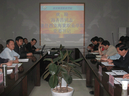 2009年4月14日下午2:30,我院在一号会议室行“西安海棠学院欢迎冯齐昌同志就任beat365手机版官方网站党委书记”的欢迎会,我院记者景盼跟踪采访,杨占娣拍摄。 出席本次欢迎会的领导有:西安海棠学院常务副院长兼党委副书记冯居秦,西安海棠学院党委副书记王爱民,西安海棠学院副院长蒋国瑜,西安海棠学院副院长王景洪,西安海棠学院副院长吕博,以及各分院的院长,学生处的领导。