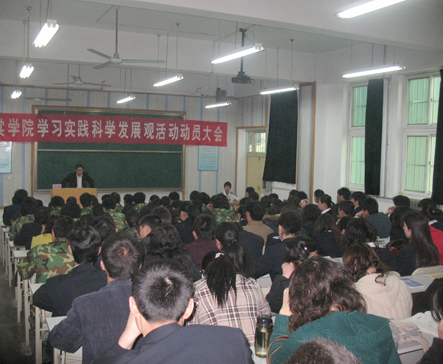 学习实践科学发展观活动领导小组副组长、副院长蒋国瑜作学习实践科学发展观活动的具体部署,他认为:我们要深刻认识到本次学习实践活动的重要性,发扬党在十七大精神中的中药举措精神,学院党委要以培训班的形式加强对党员的教育,为学院的经营与发展作坚实的基础。党员要充分发挥模范带头作用,立足长远,突破在学习科学发展观时期的障碍,推进机制和体制改革与创新。蒋院长还指出:贯彻落实科学发展观的根本要求是: