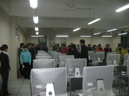 第二部分,所有员工分成四组由院办工作人员带队参观了我院为包装设计专业特地配置的苹果专业机房,教育局领导对我院苹果专业机房在教学中所起到的积极作用予以高度肯定.接着在王院长的带领下参观了我院保健品生产线、化妆品生产线、康复实验室、人体生命科学馆、中药标本馆、显微镜实验室、中药诊断实操室、医疗美容实训室、护理实验室、示教室、内科护理实训室、重症监护室、妇儿护理实验室、口腔技工实训室、眼视光学专业实验室。