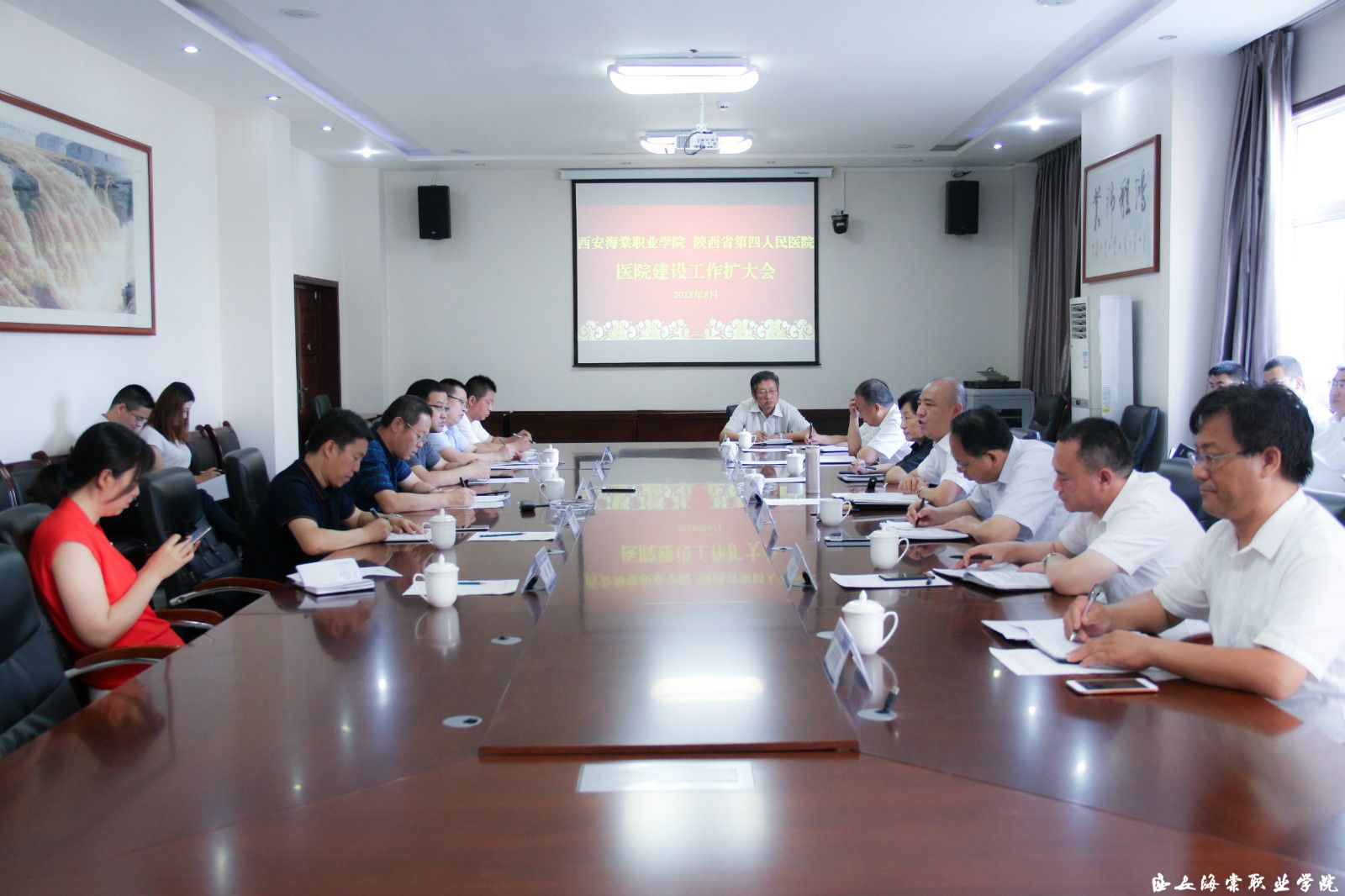 2018年8月20日上午,beat365手机版官方网站与陕西省第四人民医院在学院召开医校合作第二次会议暨医院建设扩大会议。两院就医院命名、医院建设选址、重点发展科室设置、人力资源部署、医养一体化模式推进等事项进行了明确。