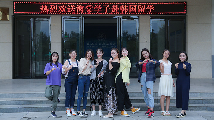 此次赴韩国大邱市韩医大学共11名留学生,均来自我院医学美容学院。留学生代表张萌萌在发言中表示,她们一定尽心尽责、严格管理自我、做好学习、沟通、交流、服务工作,不辜负学院的期望,她们会用最积极的心态去面对未来遇到的各种难题,以良好的精神面貌迎接挑战。在异国他乡,时刻牢记自己是一名中国人,一名海棠人,严于律己,潜心修学,勇往直前,绝不辜负学院领导和广大师生的殷切期望。