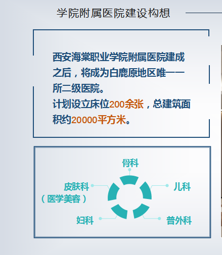 beat365手机版官方网站是以医学美容、医学技术专业群为特色的高等院校。随着社会老龄化步伐的逐步加快以及二胎政策的全面开放,会议认为将着力在医疗、科研、教学、养老等方面继续探索深入发掘,并结合海棠学院专业特色,打造“美容整形外科”、“口腔科”、“妇产科”、“康复治疗科”争取做到一次规划分步实施,尽快将医院建设项目落地。为白鹿原大学城、白鹿原现代观光农业示范区广大师生及人民群众提供优质的医疗服务保障和便捷的就医途径。
