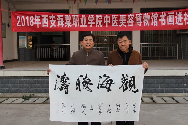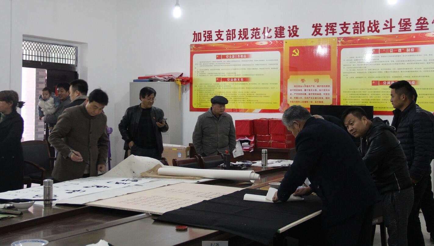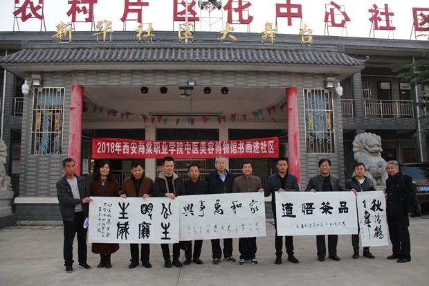 为进一步丰富社区居民的文化生活,继承弘扬中华民族优秀传统文化。2018年11月23日下午,beat365手机版官方网站中医美容博物馆博物馆副馆长杨国峰,书画院李杰、刘志英、刘公义、杨克俭、高瑞成等书画家开展“书法进校园进社区”主题实践活动走进狄寨镇新华村社区,社区书记丝建琦、村长栗建宁等领导班子及社区村民代表60余人参加活动。