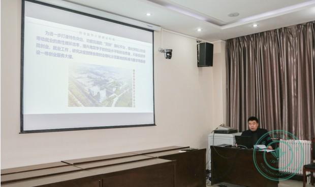 会议第二阶段,由海棠职业学院发展规划处陈晓东处长对学院创业中心建设规划做以汇报。陈处长指出,为进一步打造特色突出、功能完善的“双创”孵化平台,强化学院以创业带动就业的良性循环效率,提升海棠学子的创业水平和创业质量,不断促进学院创业、就业工作,学院研究决定按照省级创业孵化示范基地的标准与要求筹备建设一栋创业服务大楼。他分别从项目概况、项目设计依据、指导要点、规划设计要求、楼层功能区划以及相关设施配备对海棠创业服务大楼项目建筑设计进行了说明。