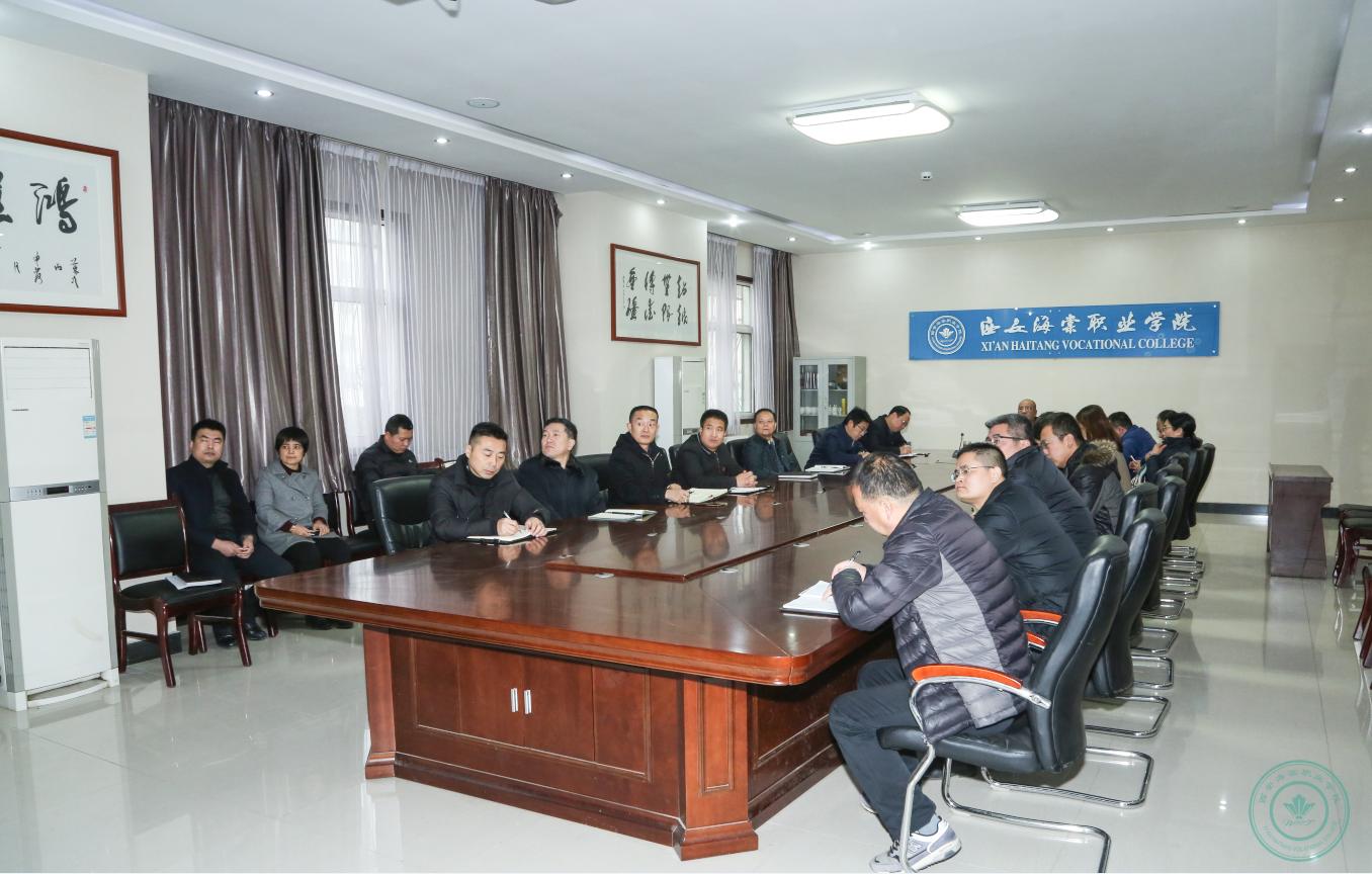2018年12月10日上午,海棠集团重点项目建设宣讲会在beat365手机版官方网站顺利召开。海棠集团董事长、海棠职业学院理事长王卓,海棠职业学院院长冯居秦、副院长吕波、许春海、郭国庆、杨国峰,海棠职业学院附属医院筹备处主任白正发,学院发展规划处处长陈晓东、征地办公室主任胡刚,海棠技师学院院长王文强、副院长刘志毅、袁克江,西安仁美建设工程有限公司总经理谭军及学院各职能处室负责人出席本次会议。本次会议分别就海棠职业学院四个重点建设项目:附属医院建设、海棠创业中心建设、海棠学院基础建设、海棠学院二期征地工作进展进行了汇报。