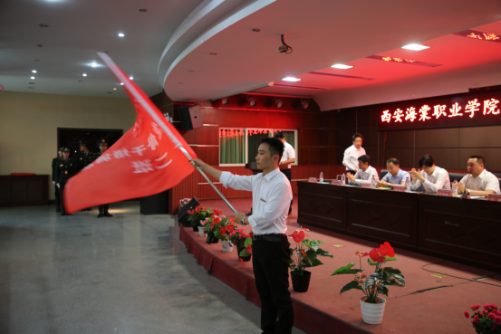 党委副书记、副院长吕博同志向本次培训班授班旗,培训班一班班主任王芸,二班班主任赵刚刚接过旗帜的那一刻代表着他们即将承担起这份光荣的使命。