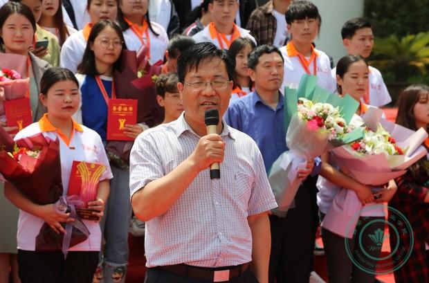 西安海棠技师学院刘志毅教学副院长发言。刘志毅教学副院长提到海棠代表团取得优异的成绩离不开扎实的技能和过硬的心理素质,也离不开指导教师和学院领导的辛苦付出,希望学子们以此次获奖为契机,再接再厉,再创辉煌!