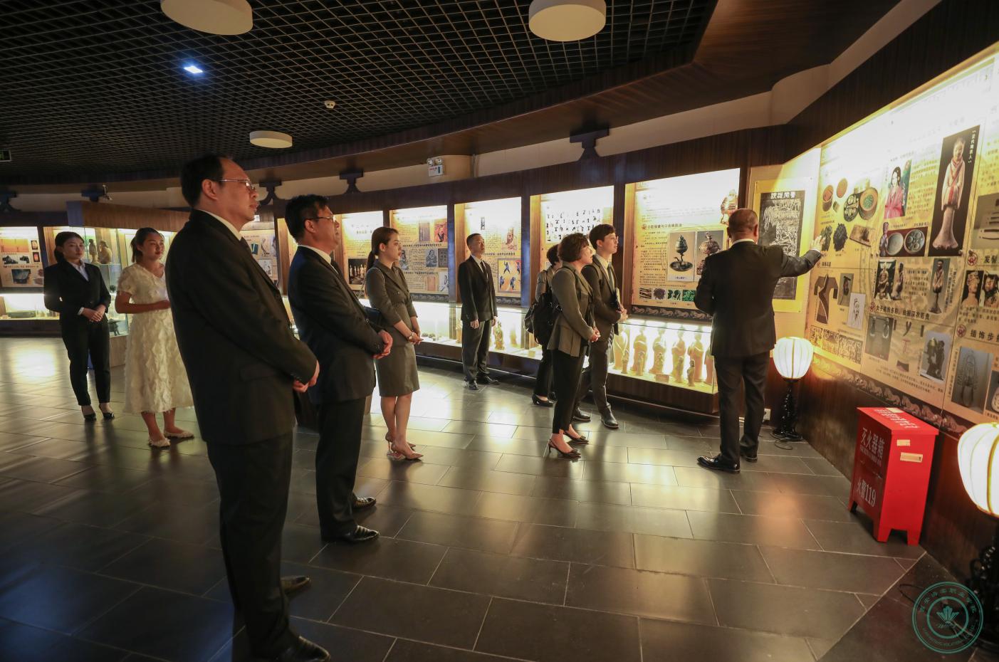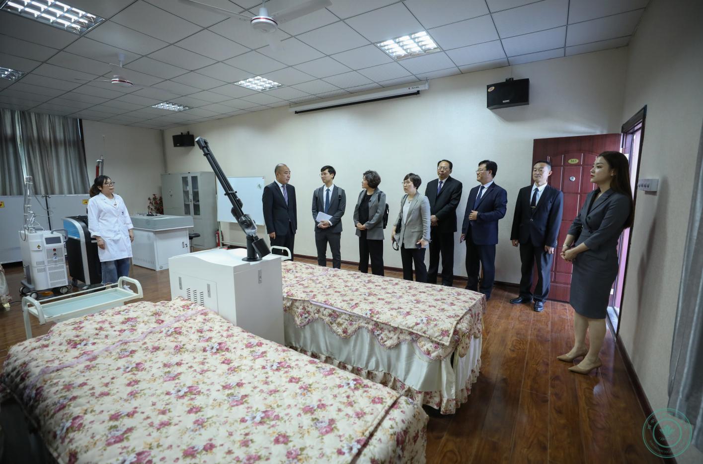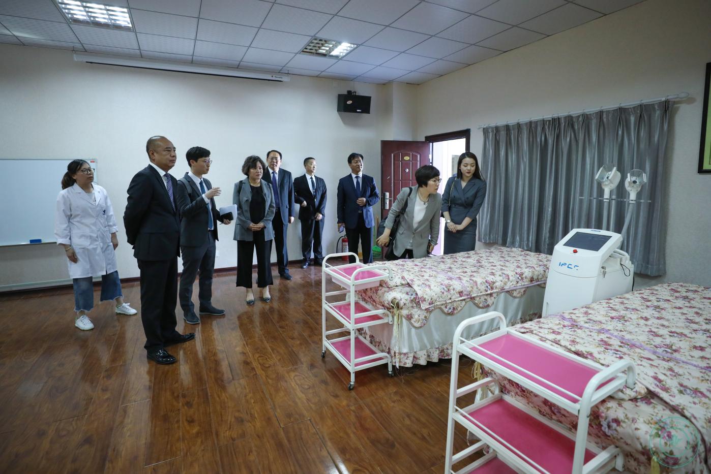 会见结束后,理事长王卓带领李善宰校长一行参观了学院医学美容实验实训中心、中医美容博物馆、医学技术实验实训中心,详细为李善宰校长一行介绍各项实验器材使用情况,并就中医美容博物馆各项陈列展品详细讲述了历史渊源及使用场景和方法。