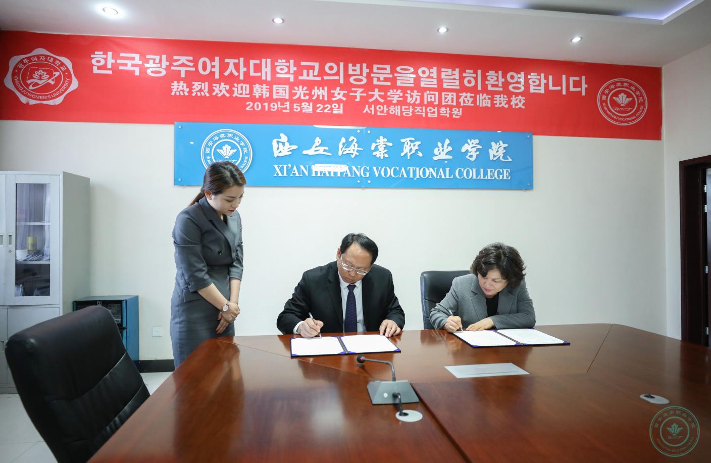 随后,双方就人才培养模式、具体合作方式等细节细致磋商,最终达成一致意见,签署框架合作办学协议。最后,李善宰校长一行与王卓理事长等学院领导合影留念。