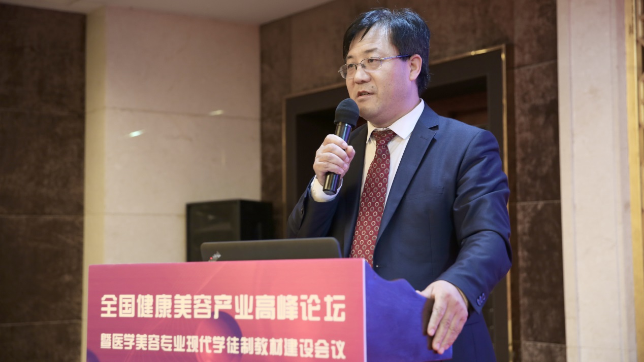 杨国峰院长在致辞中谈到,为了贯彻落实《国务院印发国家职业教育改革实施方案》、教育部《关于全面推进现代学徒制工作的通知》及全国教育大会精神,进一步办好新时代职业教育,进一步推进美容职业教育学徒制发展,加快培育知识型、技能型、创新型高素质美容职业技术技能人才,促进产教融合、校企全面加强深度合作,在各方的共同努力下,在美丽的古城西安隆重举办“全国健康美容产业高峰论坛暨医学美容现代学徒制教材建设研讨会”。