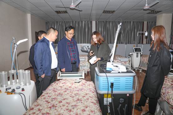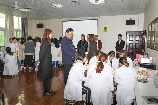 黎维安校长一行人先后对我院医学美容实训中心、中医美容博物馆 、医学技术实训中心、大学生创业孵化项目——海棠中医美容医院进行了参观。在参观中,黎维安校长表示,海棠职业学院专业特色鲜明,尤其是在医美、医技类专业的设施设备先进、全面。宁强职教中心现有开设的部分专业过于传统,对学生和家长吸引力不足,基层学校办学条件差、教学水平有待提升,希望通过中高职的深度合作,弥补其中不足。实现专业开拓、人才培养及中高职贯通教育的合作共赢。