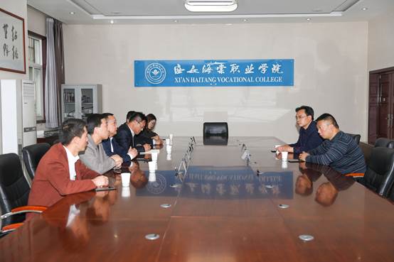 11月12日,汉中市宁强县职教中心校长黎维安、教务主任郑志华一行人员来访我院,就中高职合作办学进行洽谈。beat365手机版官方网站院长助理王智锦、招生处处长马敬涛、校企合作处处长吴刚、宣传处处长郁昱、招就专员多杰扎西等学院有关领导及同志热情接待并陪同洽谈参观。
