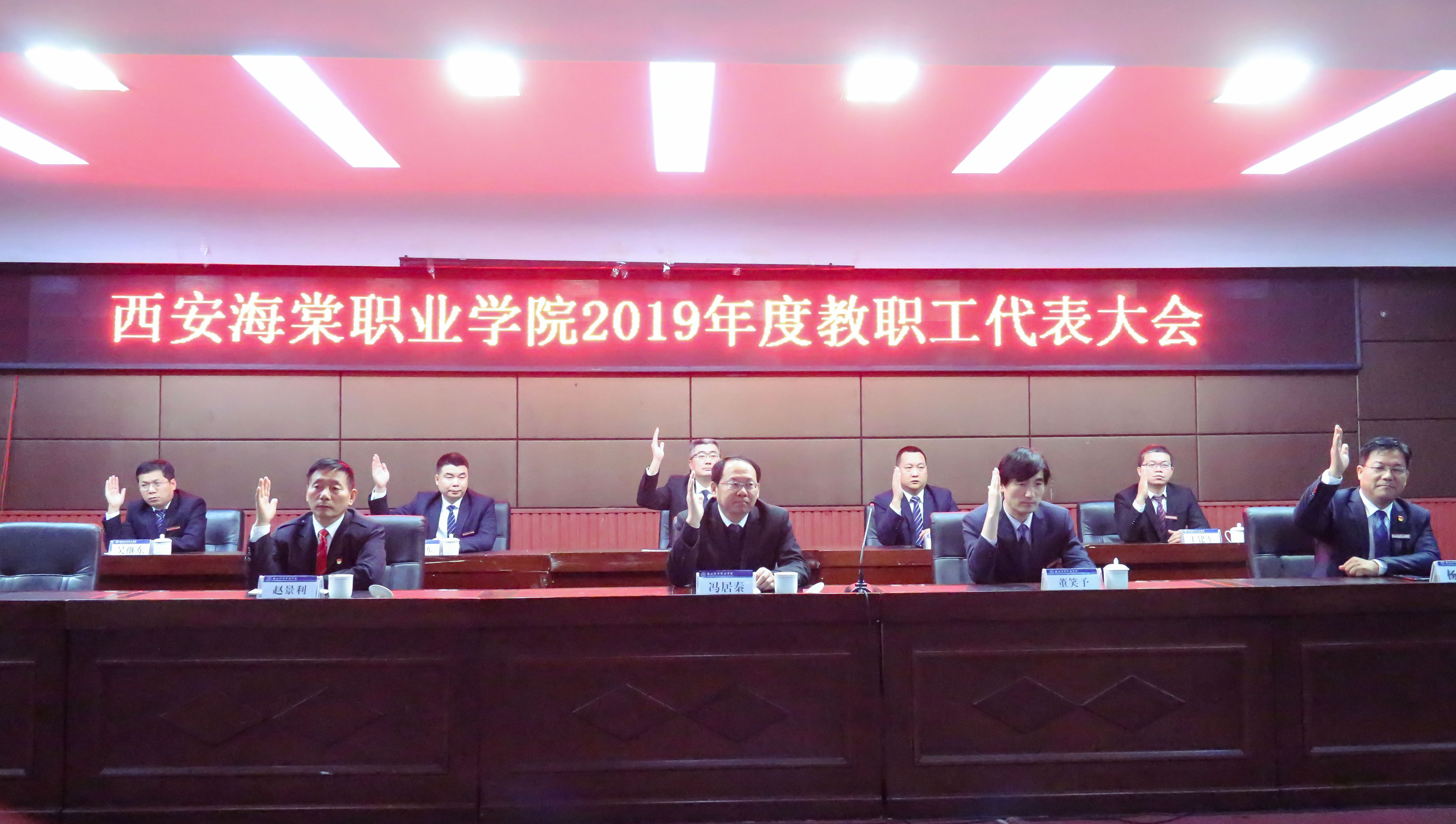 在全国上下全面开展“不忘初心.牢记使命”主题教育之际,11月13日下午,beat365手机版官方网站召开2019年度教职工代表大会。这是学院校园政治的大事,也是一次具有重要作用和里程碑意义的大会。学院院长冯居秦、副院长吕波、高琦、董笑予、杨国峰、工会主席赵景利、院长助理王智锦、财务处处长吴继东、人事处处长陈晓东、职业能力建设处处长王建军及全体教职工代表参加会议。